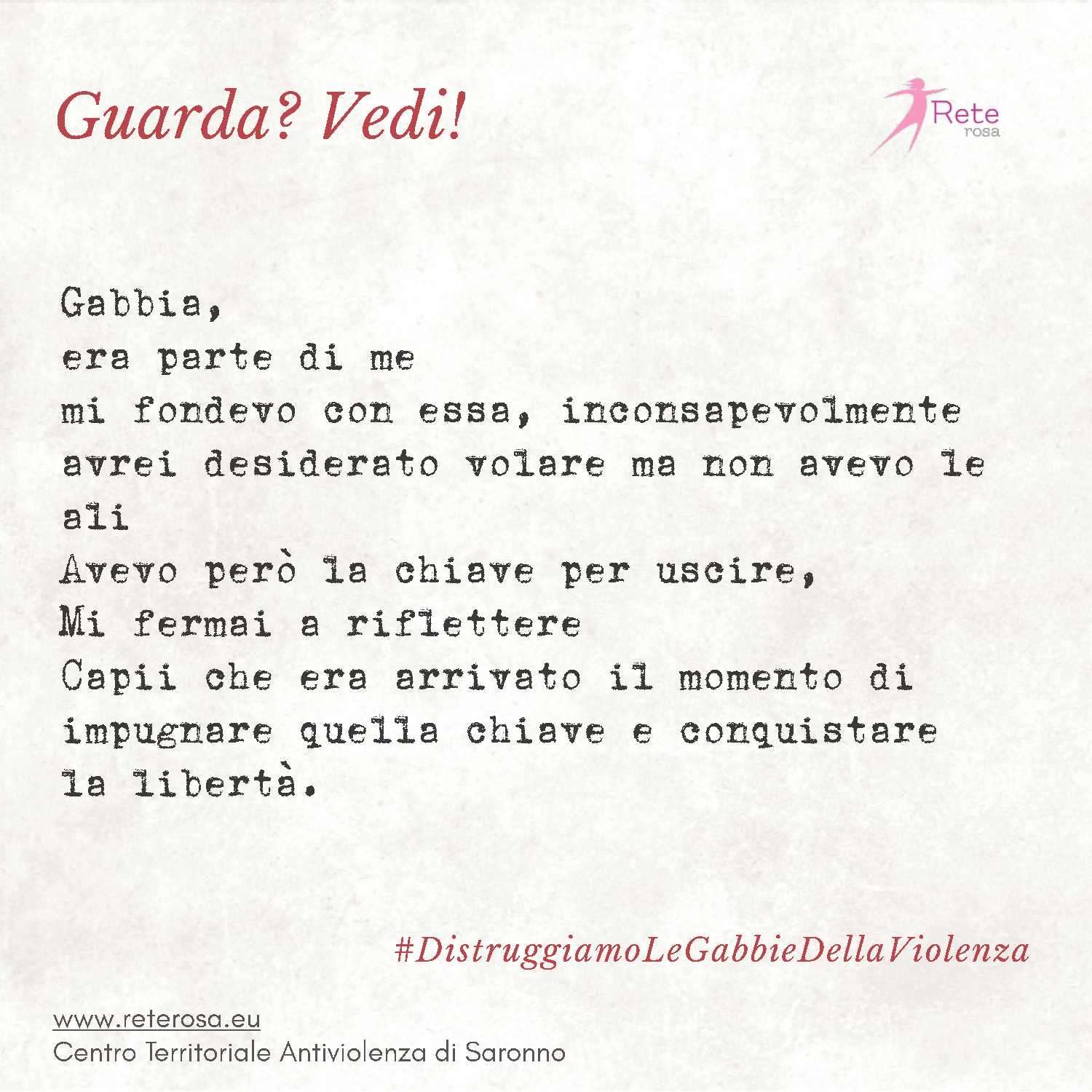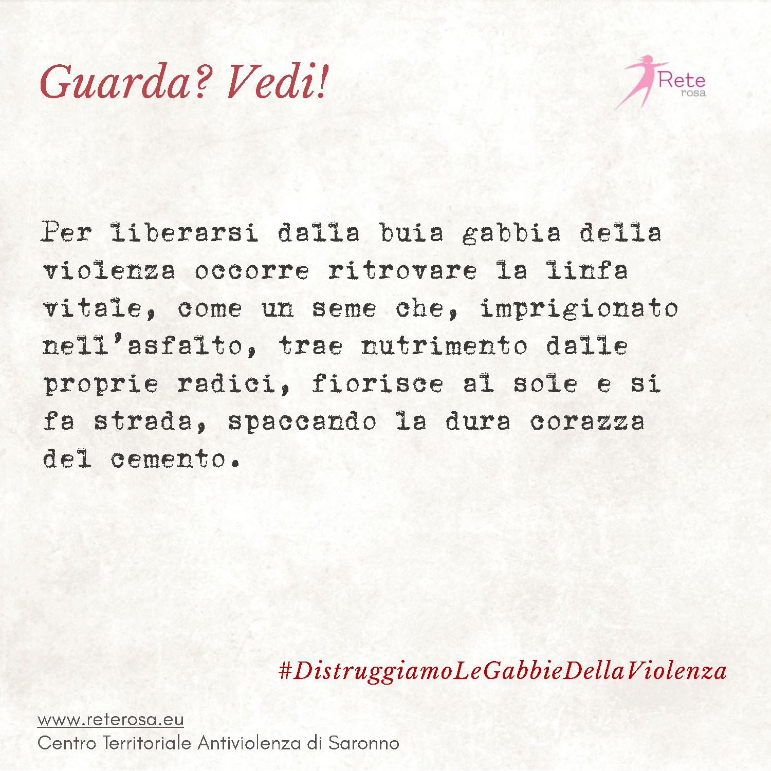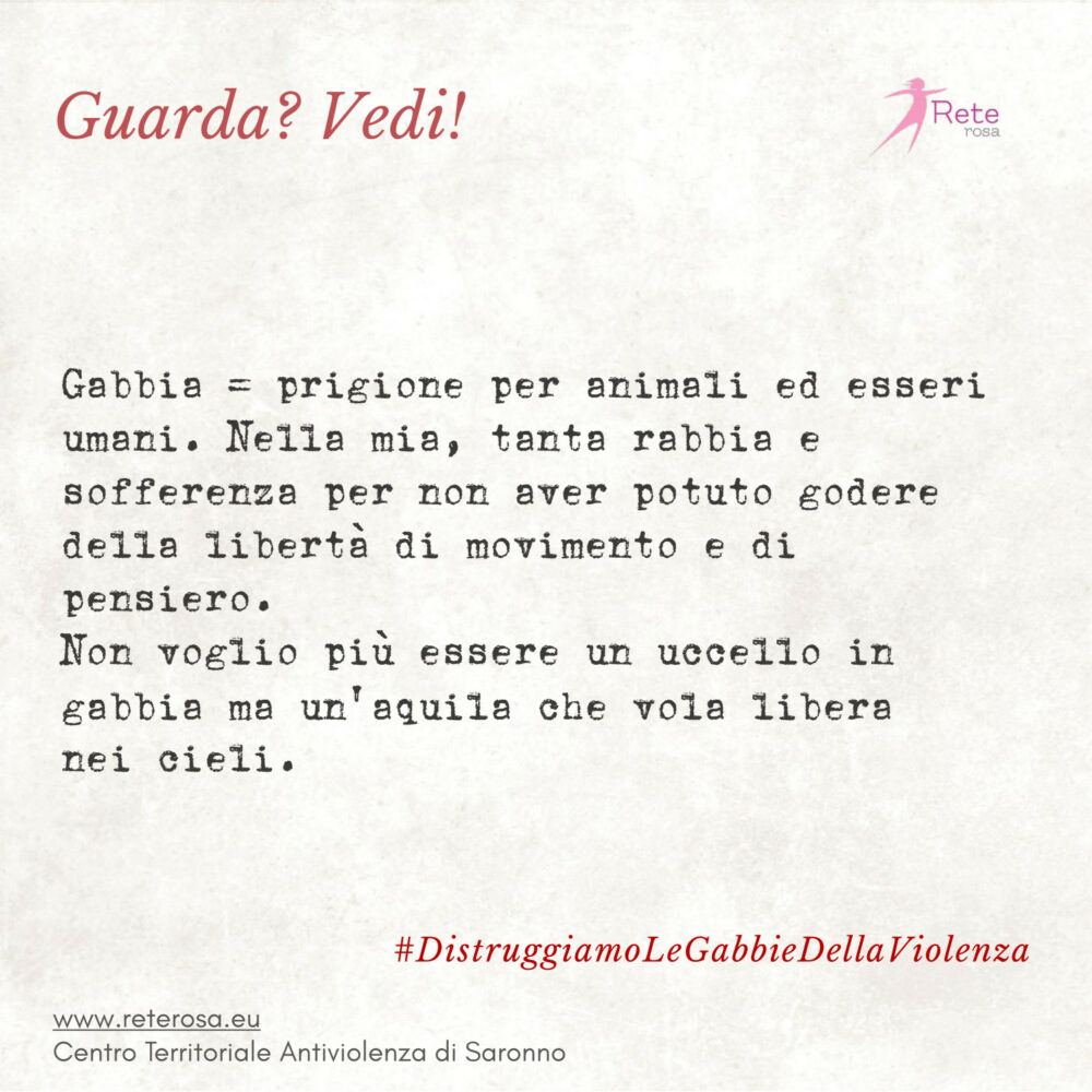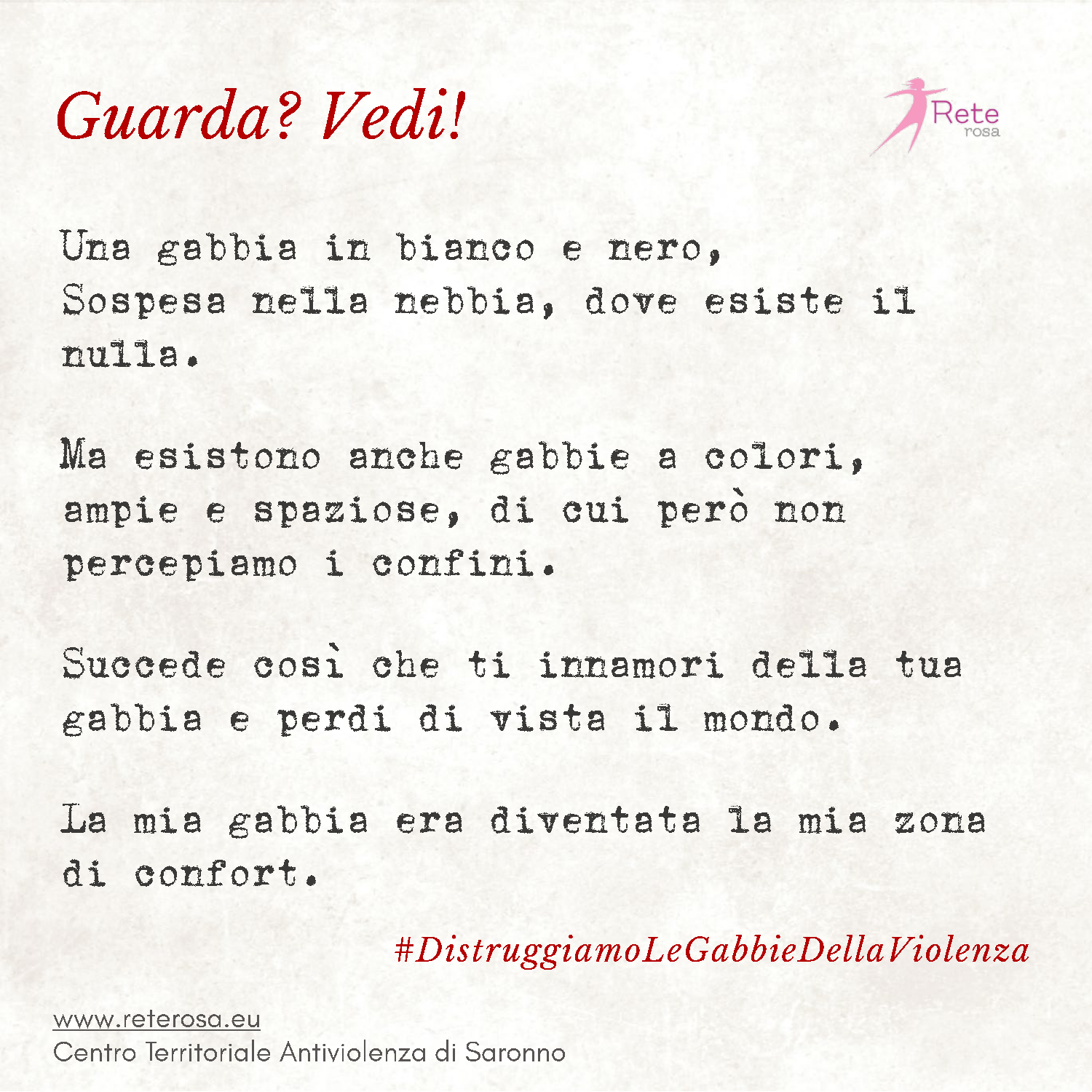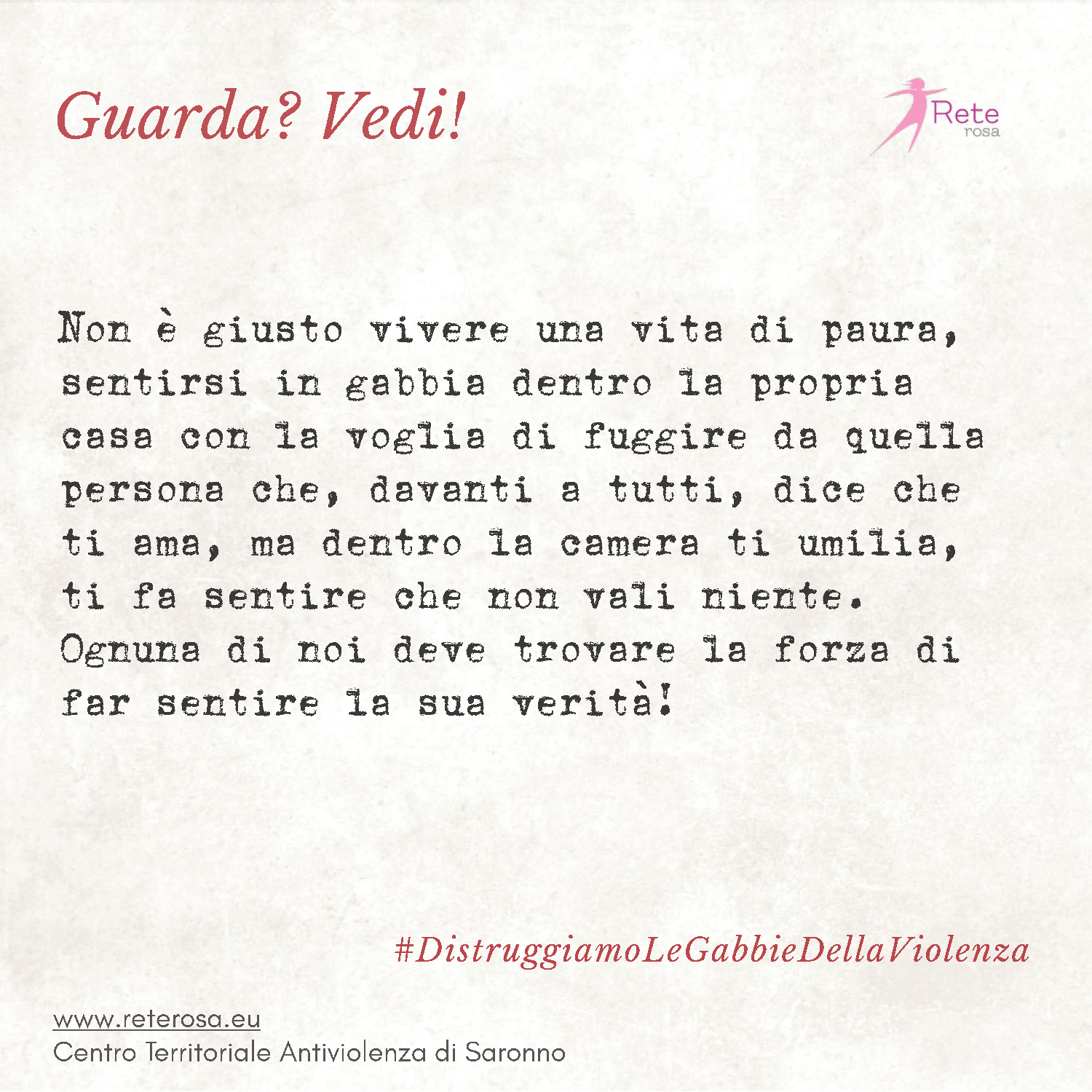 Le frasi recitate durante l’evento di performing Art Guarda? Vedi! Gabbie, il quadro vivente contro la violenza di genere organizzato da Rete Rosa in occasione del 25 Novembre.
