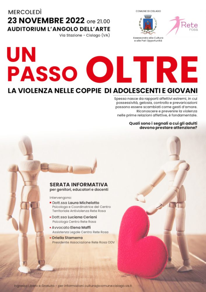 Nella settimana in cui ricorre la Giornata Internazionale contro la violenza sulle donne, il Comune di Cislago e Rete Rosa – Associazione che gestisce il centro territoriale antiviolenza di Saronno e del Saronnese – organizzano una serata informativa per genitori, educatori e docenti.